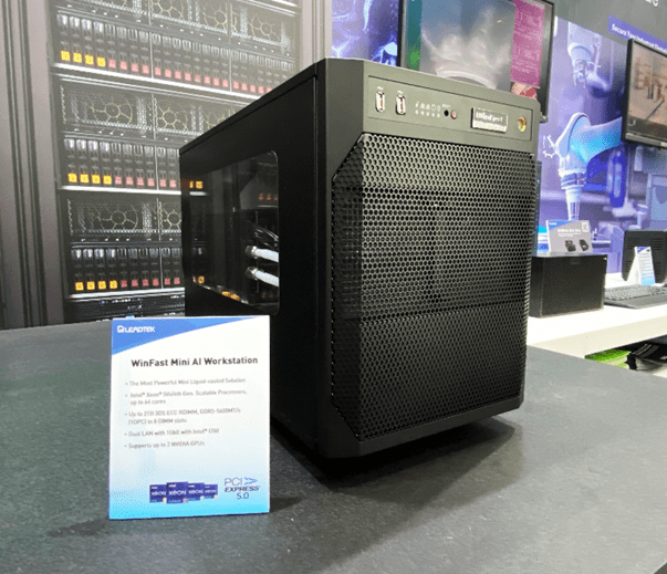 這次曝光的新品 WinFast Mini AI 工作站專為全民AI化打造。最高可支援 2 張高階 NVIDIA RTX Ada Lovelace GPU,同時提供更高瓦數電源供應器,為NVIDIA下一代GPU做好準備。再加上液冷散熱技術,能更有效降低 GPU 溫度並提供安靜的運作環境,適合沒有獨立大型機房的場域使用。集結高效、安靜、高彈性於一機,WinFast Mini AI 工作站將會是全民AI化的AI工作站。