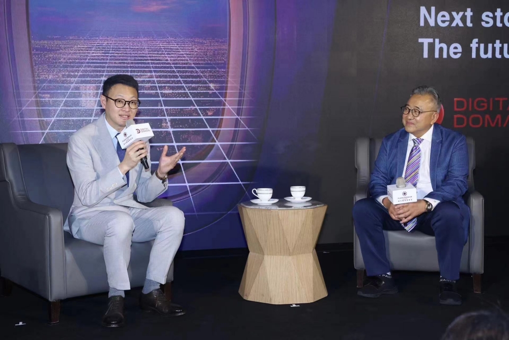 ▲数字王国の謝安最高経営責任者(CEO) (左)は環亜集団の創設者兼最高経営責任者(CEO)の宋海西氏(右)と、AIバーチャルヒューマン技術で乗客の体験を再構築する。