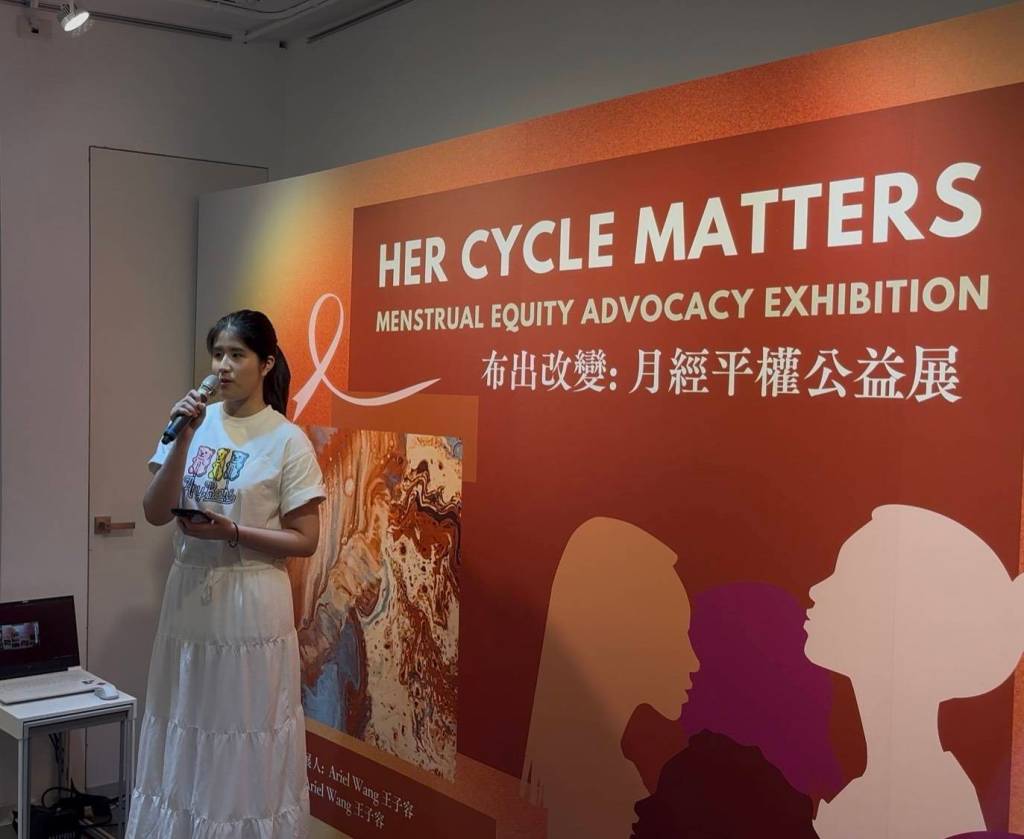 臺北市私立復興實驗高級中學雙語部高二學生 王子容 Ariel,於 2025 年 7 月 24 日至 7 月 28 日在「聽說故事」空間舉辦《Her Cycle Matters》月經平權公益展,透過圖像、故事與互動展件,引領觀展者重新認識「月經」,也看見世界上另一端女孩們的真實困境。